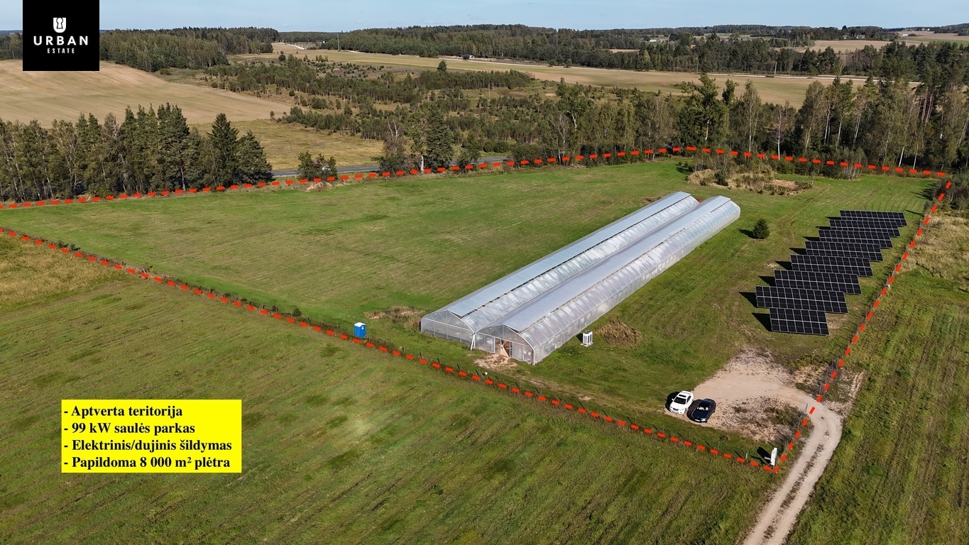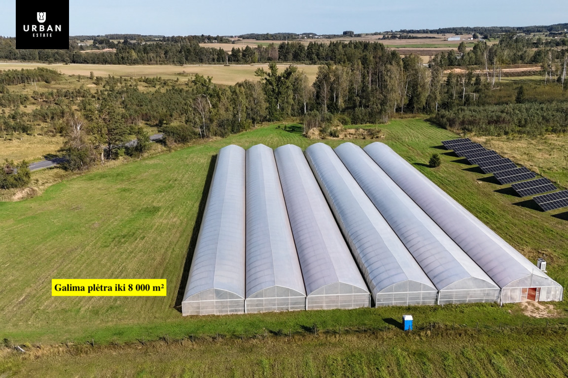 – Šiltnamis – 2 000 m² (naudojama ~1 300 m², galima greitai išplėsti iki 1 800 m² be didelių investicijų)